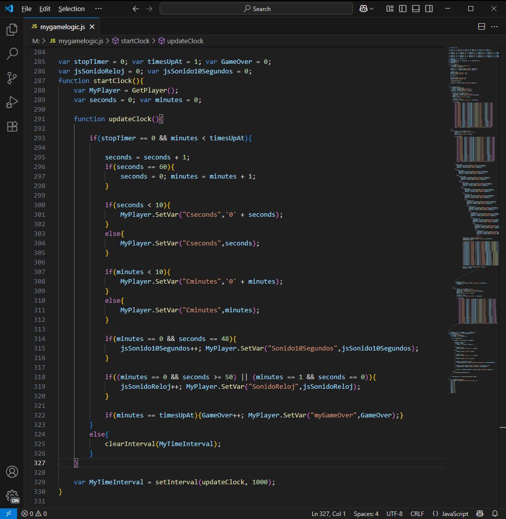 This game uses vanilla JavaScript in an external source file that I created using Visual Studio Code. The JavaScript source file is added to the Articulate Storyline output package after it is published out. Then the output package is zipped up and uploaded to the LMS (Learning Management System).